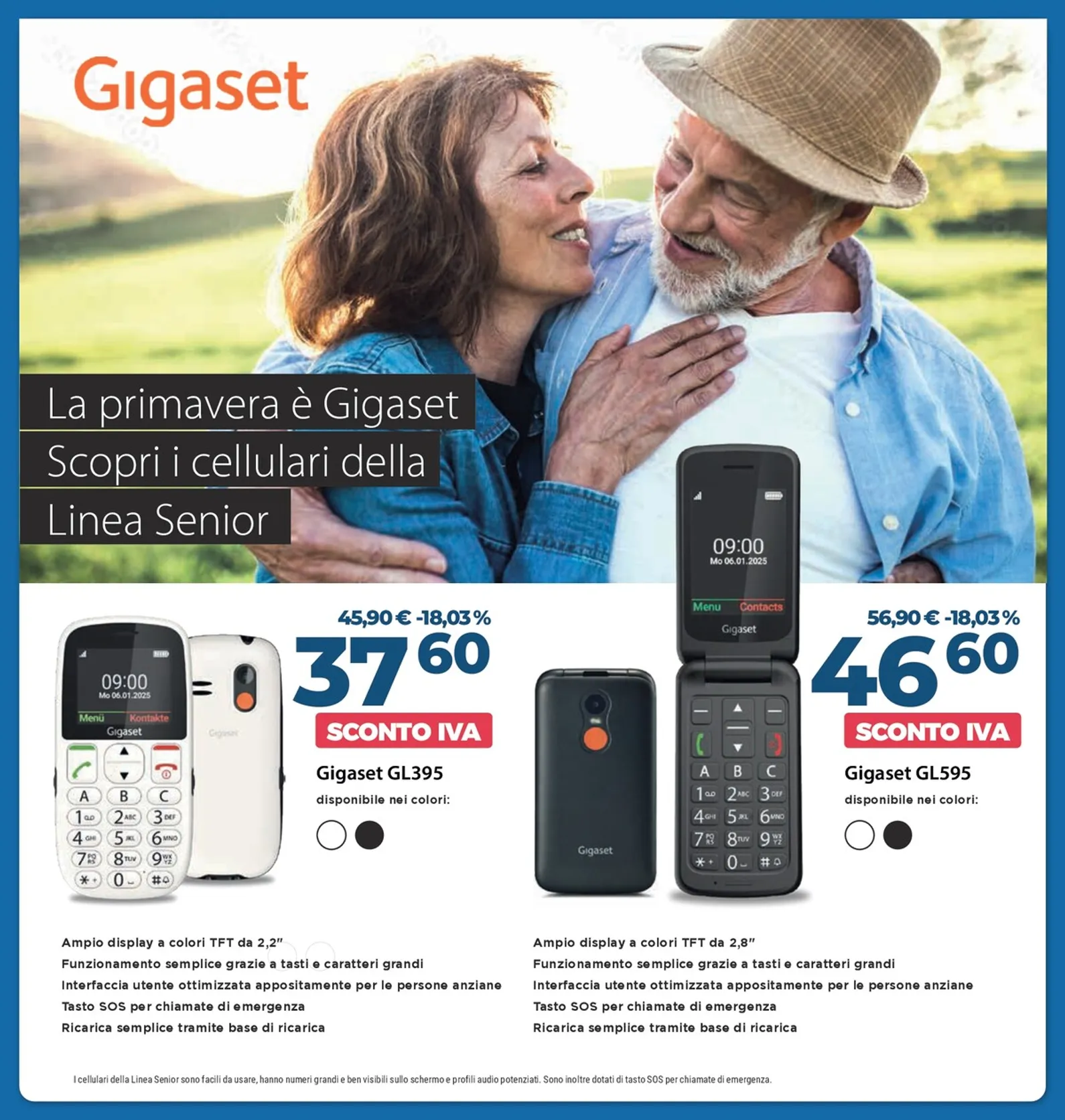 L’assortimento include anche i cellulari Gigaset della Linea Senior, pensati per la massima semplicità d’uso. Questo volantino è una vera guida al risparmio. Per non perdere queste opportunità e consultare il catalogo completo, visita il nuovo Sinergy Volantino online. Affrettati, le scorte sono limitate e questo è il momento migliore per trovare le Sinergy Volantino dal 10/04/2026 che stavi cercando.