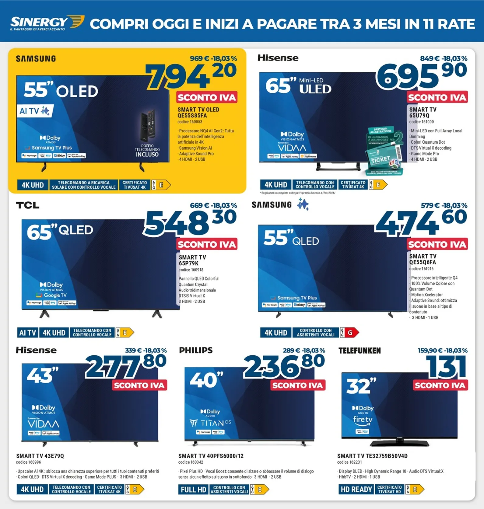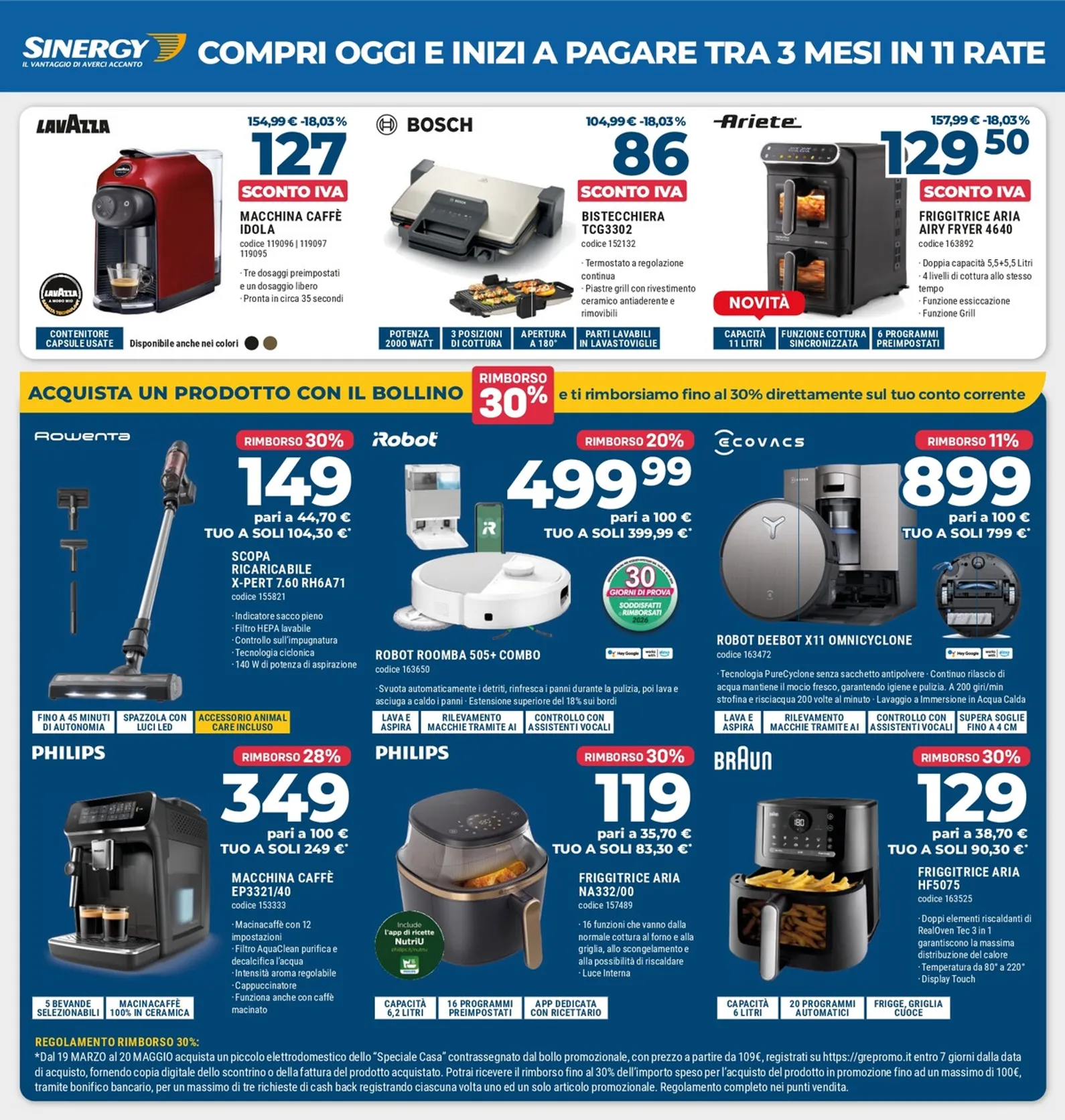 Sinergy lancia la sua nuova promozione “Sconto IVA”, attiva dal 10 Aprile al 7 Maggio. È un’occasione imperdibile per rinnovare la tecnologia di casa con prezzi eccezionali su un vasto assortimento. Questo è il momento giusto per esplorare le Sinergy Volantino dal 10/04/2026 e trovare l’articolo desiderato. La convenienza è amplificata dalla possibilità di acquistare subito e iniziare a pagare dopo tre mesi, rendendo ogni acquisto più accessibile.