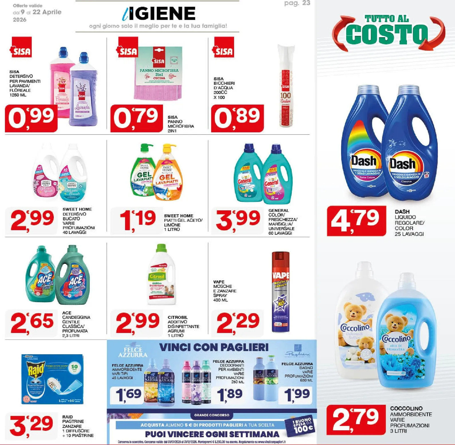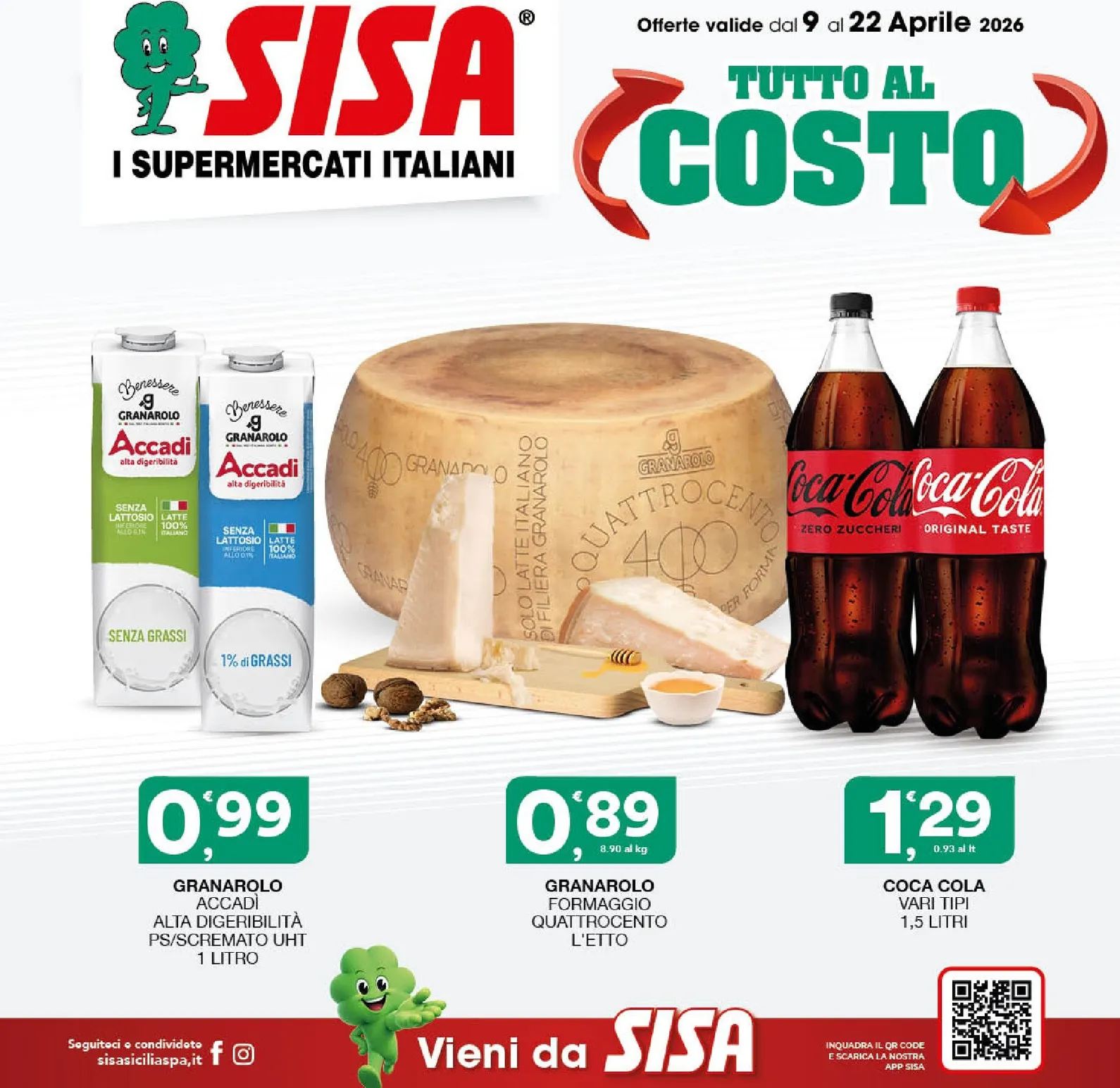 Il nuovo volantino Sisa, valido dal 9 al 22 Aprile 2026, lancia la promozione “Tutto al Costo”, un’occasione per fare la spesa a prezzi ribassati. L’iniziativa offre convenienza su prodotti di qualità. Le offerte in copertina promettono risparmio per le famiglie. Sfruttare questo Sisa Volantino dal 09/04/2026 significa riempire il carrello in modo intelligente, pianificando gli acquisti per massimizzare il risparmio. Il catalogo presenta proposte vantaggiose.