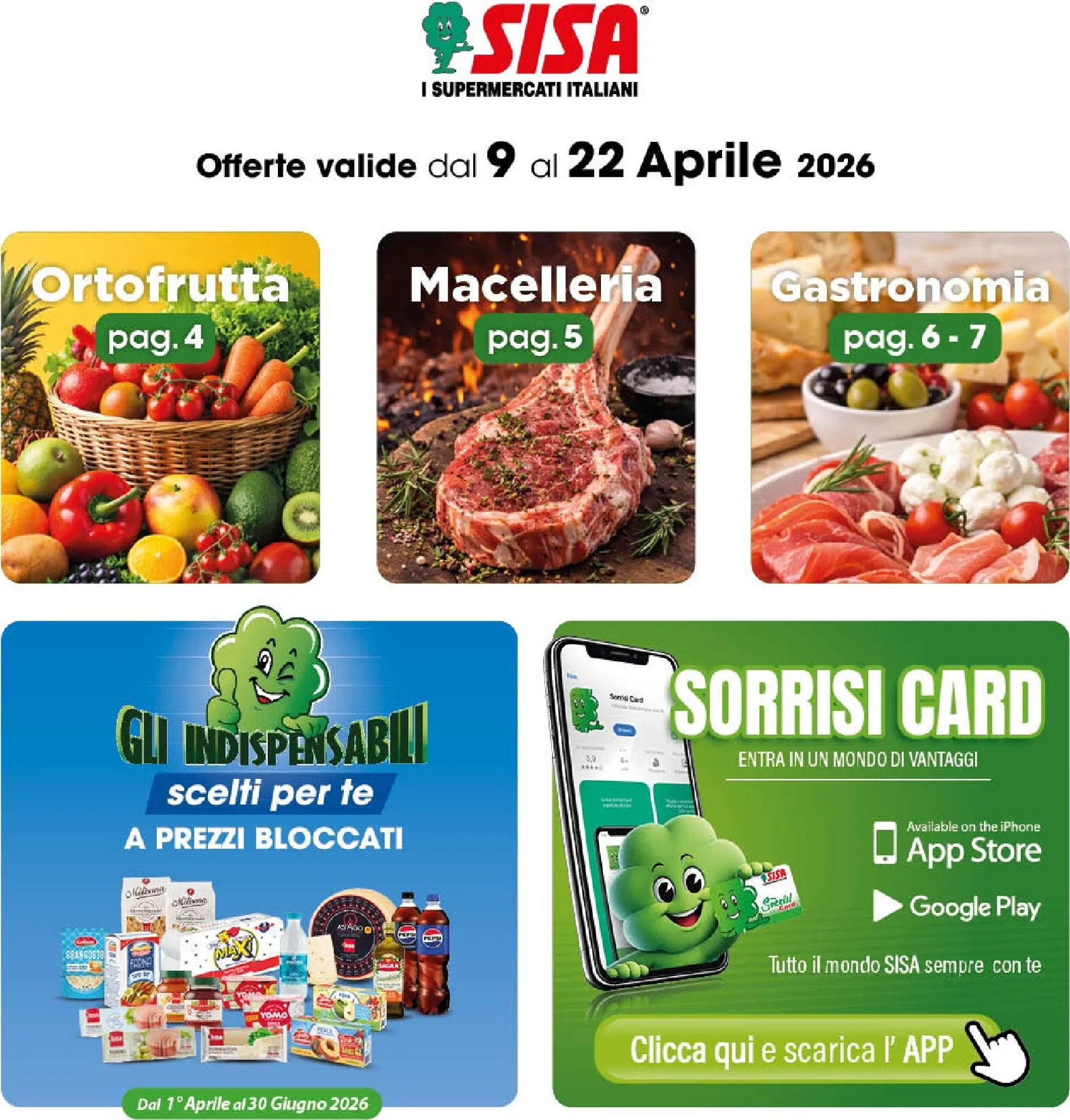 Il volantino si arricchisce con sezioni per Ortofrutta, Macelleria e Gastronomia. L’iniziativa “Gli Indispensabili”, con prezzi bloccati fino al 30 Giugno, offre tranquillità. Per non perdere queste opportunità, è essenziale consultare il Sisa Volantino dal 09/04/2026 e organizzare la visita. Per una visione completa delle catalogo e offerte, il Sisa Volantino è sempre aggiornato online, uno strumento prezioso per un risparmio costante. Sisa è l’alleato delle famiglie.