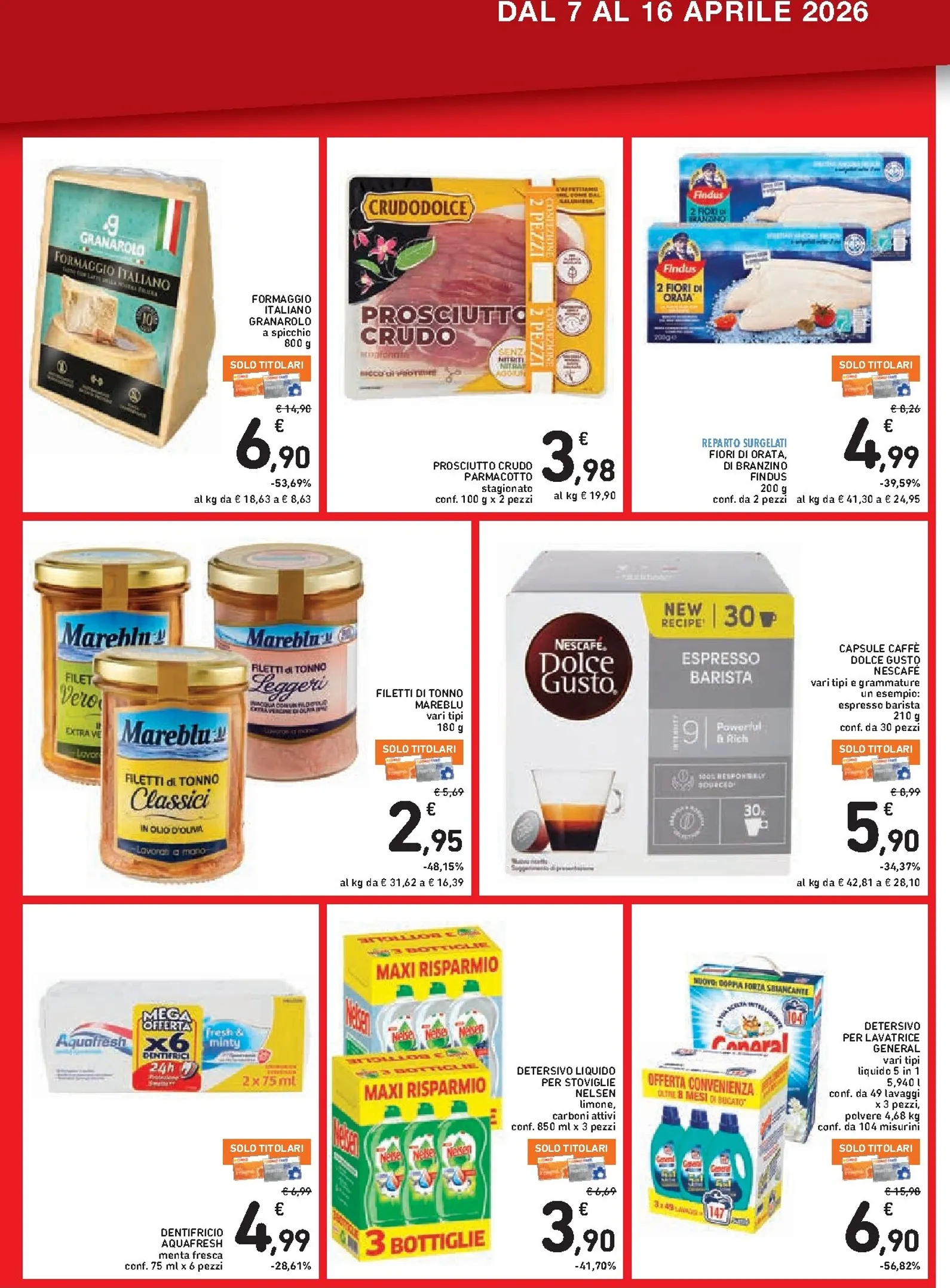 Completano il quadro delle offerte della settimana i prodotti per la cura personale e la pulizia. Troviamo il dentifricio Aquafresh a 4,99€ e il detersivo liquido per stoviglie a 3,90€. Per gli amanti del caffè, le capsule Nescafé Dolce Gusto sono in offerta a 5,90€. Questa settimana è ricca di opportunità. Consultate il completo Spazio Conad Volantino per ogni dettaglio e organizzate la spesa con Spazio Conad Volantino dal 07/04/2026 per il massimo risparmio.