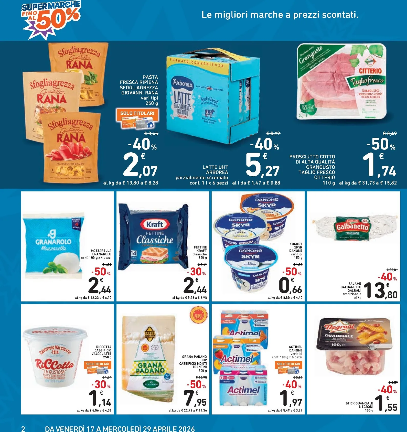 Il reparto freschi continua a stupire con sconti significativi. La pasta fresca Sfogliarezza Rana è in promozione con uno sconto del 40%, a soli 2,07€, perfetta per un pranzo veloce e gustoso. Per gli amanti dei salumi, il prosciutto cotto di Alta Qualità Granguasto Citterio è disponibile a 1,74€, con un ribasso del 50%. Non mancano le occasioni sui formaggi, con la mozzarella Granarolo a 2,44€ e il Grana Padano Caseifici Monti Trentini a 7,95€, entrambi con sconti che rendono la qualità ancora più accessibile per tutti i clienti attenti al risparmio.