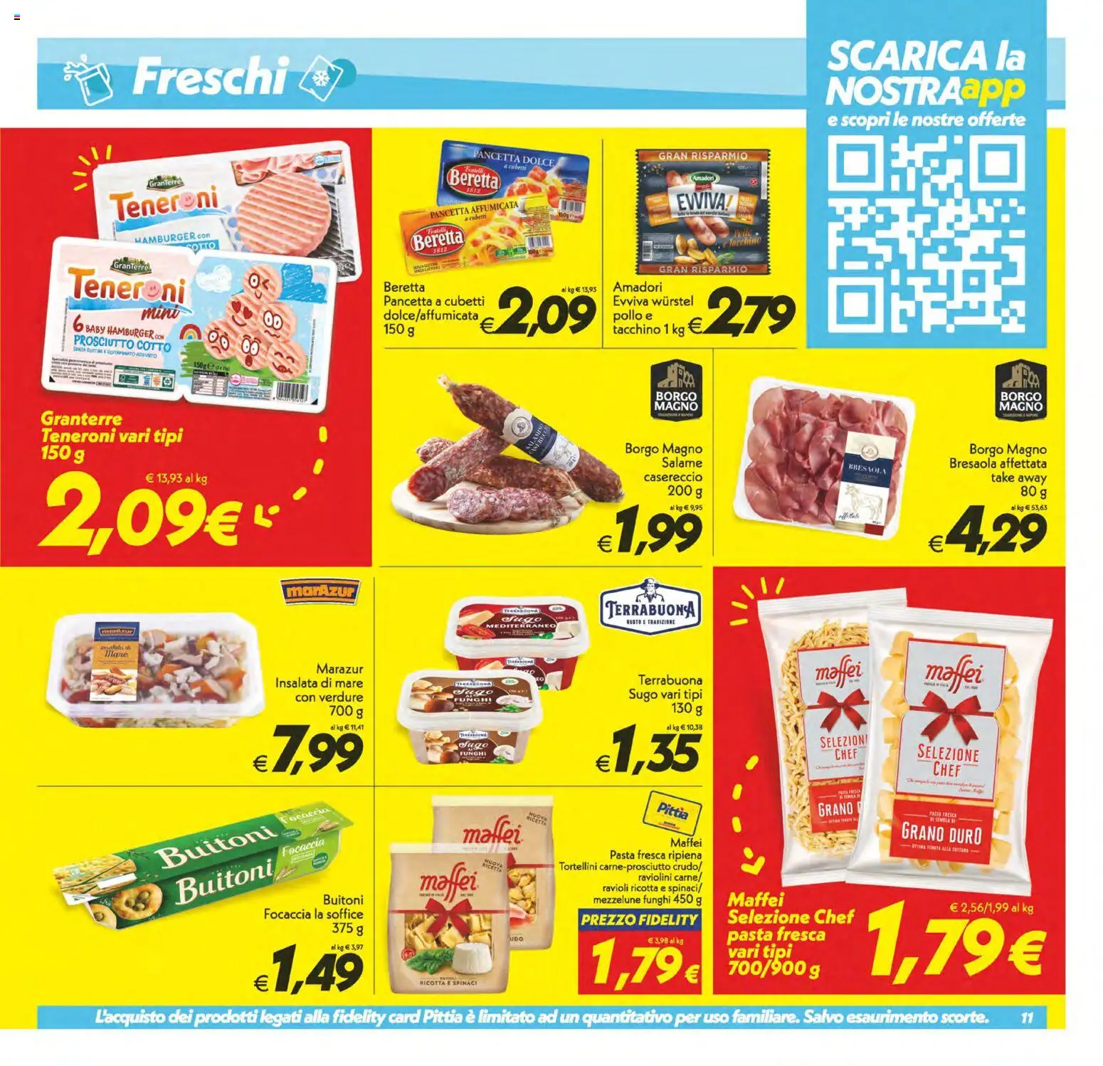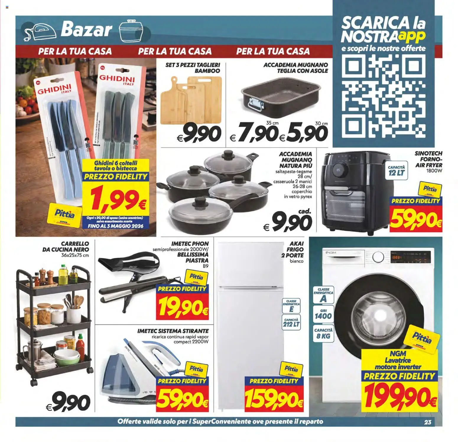 La convenienza prosegue con le offerte “Incredibili!”, come le 120 capsule di caffè Borbone a 21,90€ e il multipack di Coca-Cola (2 bottiglie da 1,35L) a 1,99€. Anche i surgelati non sono da meno, con i Filetti di Merluzzo Findus a 5,99€. Per chi ama la pizza, la Ristorante Cameo è in promozione a 2,19€. Ogni reparto offre sconti significativi, rendendo questo volantino un appuntamento da non perdere per chi cerca il massimo del risparmio senza rinunciare ai propri marchi preferiti. Per scoprire tutte le altre promozioni e preparare la tua lista della spesa, sfoglia il nuovo Superconveniente volantino.