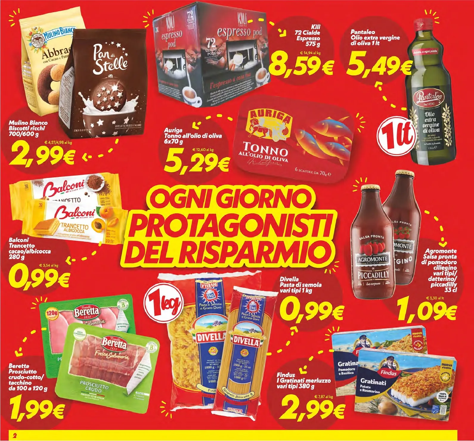 All’interno di questo ricco catalogo, la dispensa si arricchisce di gusto e tradizione. La colazione diventa un momento speciale con i biscotti Abbracci Mulino Bianco e i Pan di Stelle a 2,99€. Per i pasti principali, non può mancare il tonno all’olio di oliva Auriga a 5,29€ e la pasta Divella in formato da 1 kg a soli 0,99€. Per una cena veloce ma gustosa, i gratinati merluzzo Findus a 2,99€ sono la soluzione perfetta. Queste catalogo valido sono pensate per garantire scorte di qualità, trasformando la spesa di tutti i giorni in un’esperienza conveniente e soddisfacente, con prodotti che accontentano tutti i palati.