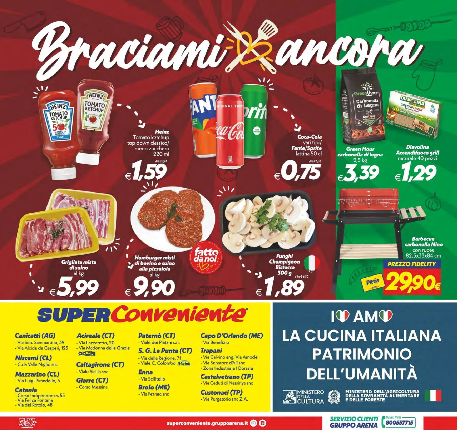Con l’arrivo della bella stagione, il volantino dedica uno spazio speciale alla grigliata con la sezione “Braciami ancora”. Troviamo la grigliata mista di bovino e suino a 5,99€ al kg e gli hamburger a 9,90€ al kg, perfetti per i vostri barbecue in compagnia. Non può mancare il ketchup Heinz a 1,59€ e persino il barbecue a carbonella a un prezzo di soli 29,90€. Per scoprire tutte le altre catalogo valido e pianificare al meglio i vostri acquisti, consultate il Superconveniente Volantino completo. Sfruttare queste occasioni è il modo migliore per assicurarsi che il Superconveniente Volantino dal 17/04/2026 sia sempre a portata di mano, garantendo qualità e convenienza.