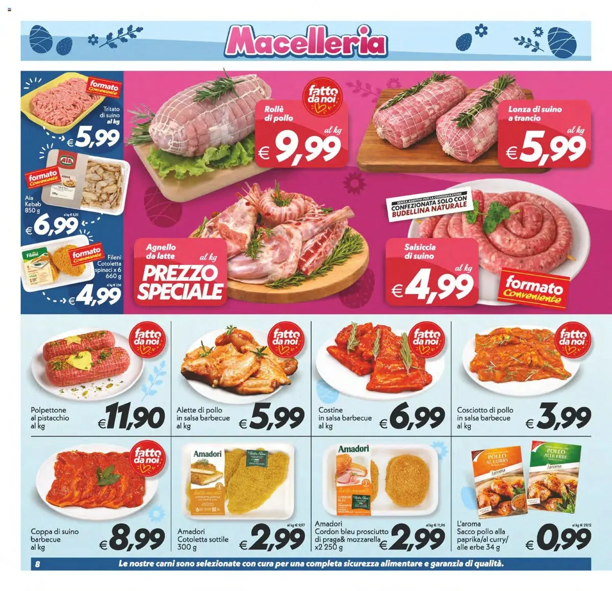 Ma le offerte non si fermano qui. Il Volantino Superconveniente dal 27.03.2026 include anche promozioni su prodotti essenziali per la tua tavola, come la fresca Salsiccia di suino al kg a soli 4,99€, perfetta per i tuoi pranzi festivi. E per accompagnare ogni pasto, la Coca-Cola 4×1,35 lt è disponibile a 3,49€. Non perdere l'opportunità di approfittare di questi prezzi vantaggiosi. Pianifica la tua spesa e scopri tutte le altre incredibili promozioni disponibili.