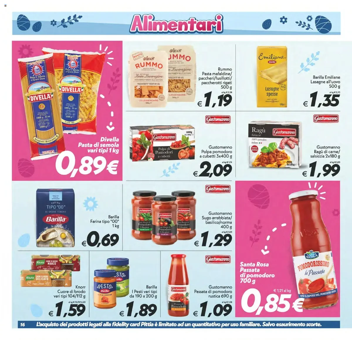 Tra le proposte più allettanti, spiccano le offerte sui prodotti freschi come la Salsiccia di suino al chilo a soli €4,99, ideale per grigliate. Non mancano le bevande, con la Coca-Cola 4×1,35 lt a €3,49. Per la Pasqua, la selezione di uova e colombe è ricchissima: la Gust'Oro Colomba classica o senza canditi da 750/700 g è disponibile a €6,99. Per i gusti più ricercati, la Colomba cioccolato e rum, pistacchio o limoncello da 750 g è a €7,99. Per i più piccoli, le uova di Pasqua sono un must: l'Uovo Witor's Care bears 150 g a €5,79, l'Uovo Dolci Preziosi Superman/My little pony/Principesse/Spongebob 150 g a €5,99 e l'Uovo Dolfin Ovvosauro/Principessa Alysel/Polaretti&Friends/Fast crash/Piccoli chef 220 g a €7,29 promettono sorprese. Anche l'Uovo latte unicorn Di Costa 240 g a €7,49 è un'ottima scelta.