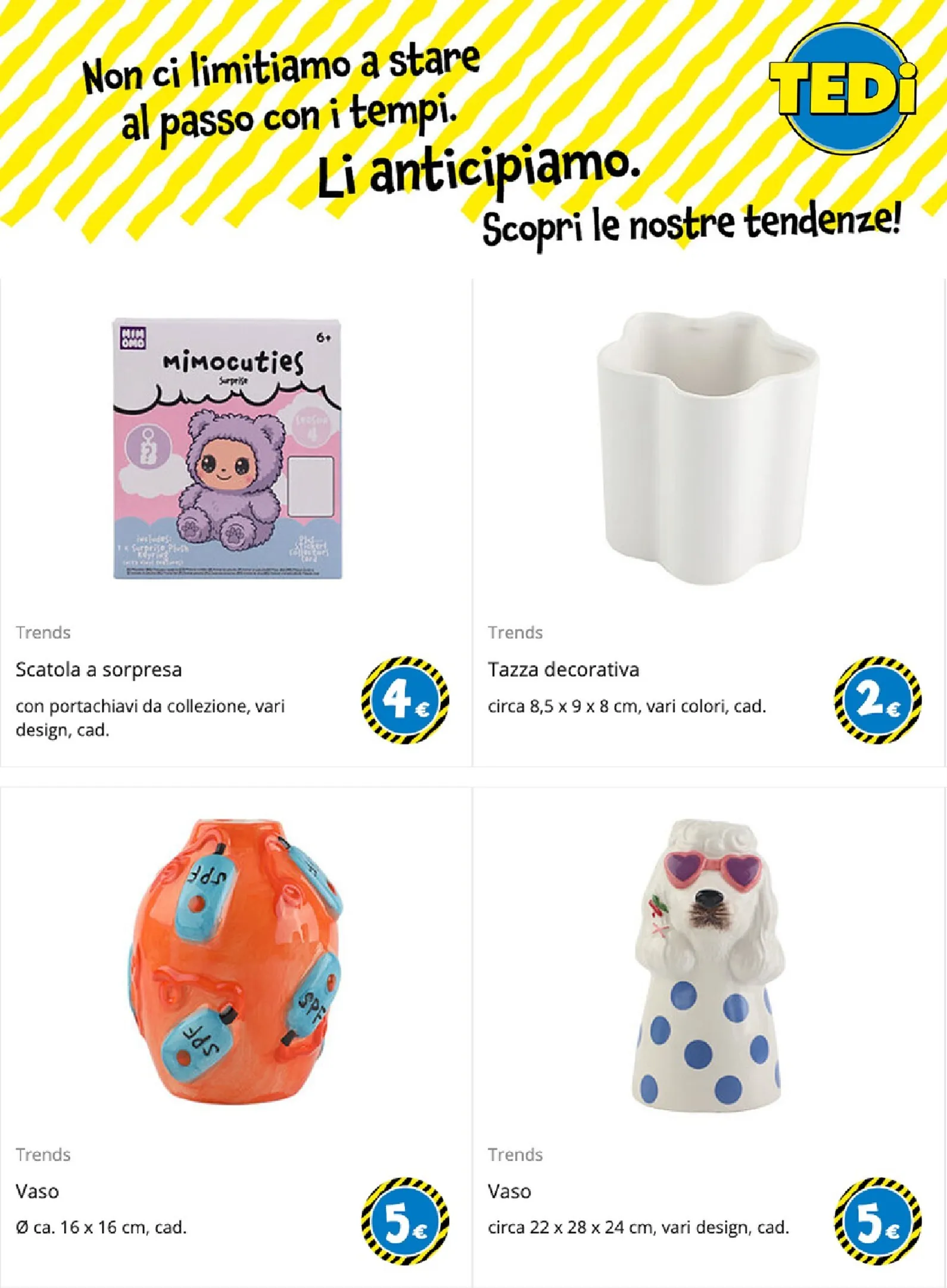 TEDi lancia la sua nuova campagna “Li anticipiamo”, un invito a scoprire le tendenze prima che diventino mainstream. Questo catalogo è un concentrato di stile, pensato per chi ama circondarsi di oggetti unici. Dalle decorazioni per la casa agli accessori personali, ogni articolo è selezionato per portare un tocco di novità. Sfogliando queste pagine troverete tantissime idee originali e il TEDi Volantino dal 09/04/2026 perfetto per rinnovare i vostri ambienti con personalità.