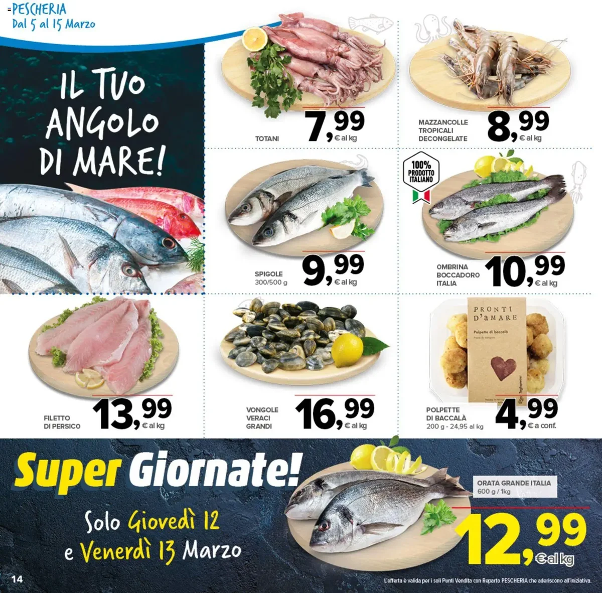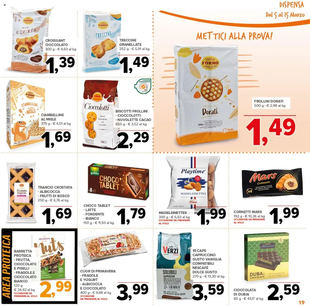 Per gli amanti della buona cucina italiana, non potete perdere la PASTA DI GRAGNANO IGP TRAFILATA AL BRONZO a soli €0,69, un vero affare per un prodotto di eccellenza. Accompagnatela con i freschi POMODORINI CILIEGINI a €0,69 o la PASTA FRESCA DI SEMOLA (Fusilli, Gnocchetti, Sardi, Trofie) a €0,95. La dispensa si arricchisce con il TONNO PINNA GIALLA ALL'OLIO D'OLIVA a €1,99 e la FARINA TIPO MANITOBA a €0,79. Non mancano le bevande, con i TERRE SICILIANE IGP – SYRAH – GRILLO a €2,29, perfetti per accompagnare i vostri piatti.