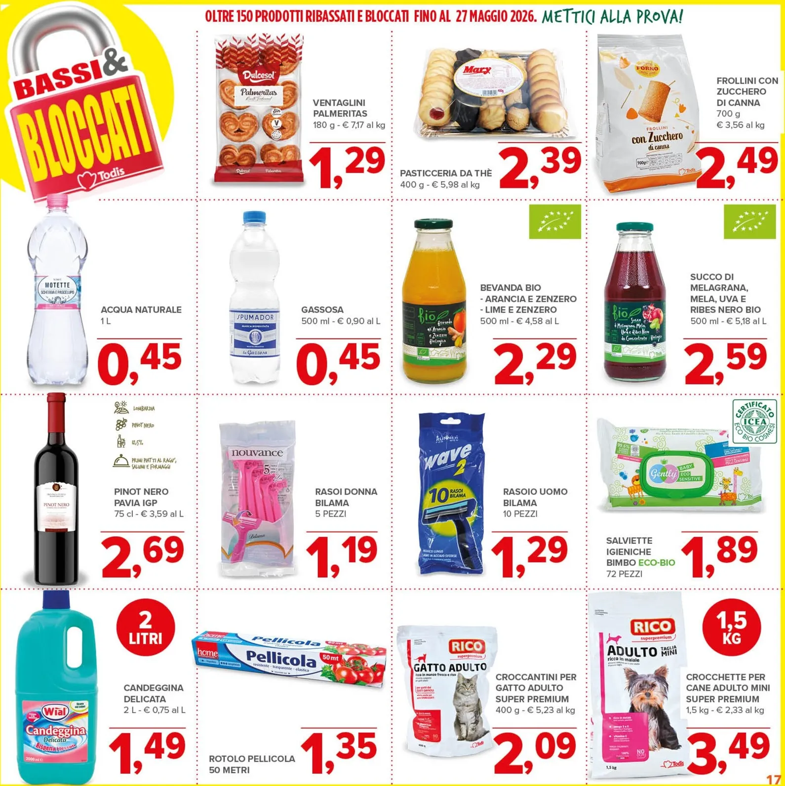 Il risparmio continua con le offerte del weekend, valide dal 17 aprile. Includono prodotti freschi come i Funghi Champignon a 2,99€ al kg e il Petto di Pollo a 6,90€ al kg. Al banco gastronomia, il formaggio Fontal è a 0,89€ l’etto. Per non perdere queste occasioni, è utile consultare le Todis Volantino dal 07/04/2026 del momento. Tutti i dettagli si trovano sfogliando l’ultimo Todis Volantino sul nostro sito.
