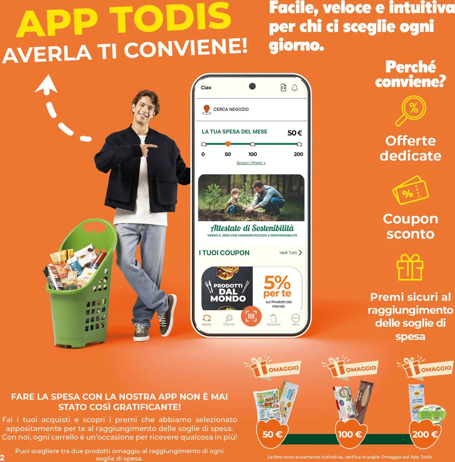 L’applicazione Todis è la chiave per un risparmio intelligente. Oltre alla promozione “paghi la metà”, offre coupon sconto e un programma fedeltà con prodotti omaggio al raggiungimento di soglie di spesa. Questo nuovo sistema premia ogni acquisto. L’interfaccia intuitiva permette di consultare le opportunità e pianificare la spesa dallo smartphone, scoprendo in anteprima tutte le nuovo offerte attive e future, per un’esperienza di acquisto ancora più completa e vantaggiosa.