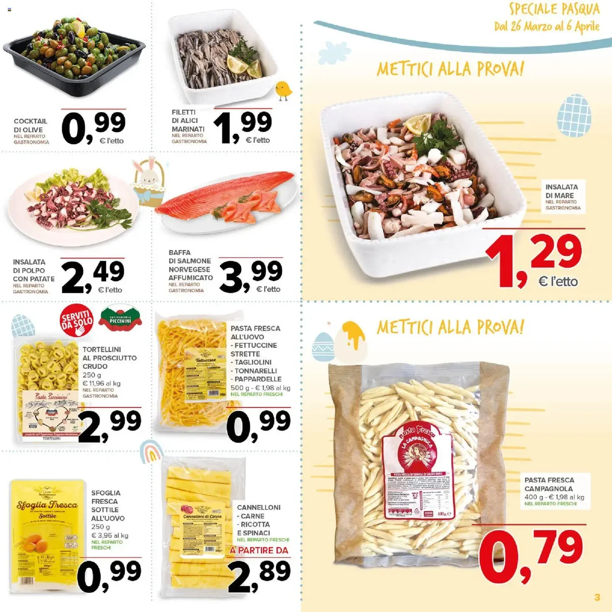 Il risparmio continua con l'eccellente OLIO EXTRA VERGINE DI OLIVA GREZZO da 1L a 4,99 €, un pilastro della dieta mediterranea. Per gli amanti dei salumi, il PROSCIUTTO DI PARMA DOP è disponibile a 2,49 € l'etto, mentre il SALAME CORALLINA a 1,09 € l'etto e il CAPOCOLLO STAGIONATO a 1,79 € l'etto offrono sapori autentici. Non mancano le specialità per le occasioni speciali, come la deliziosa PASTIERA NAPOLETANA da 700 g a 6,90 €, ideale per la tavola pasquale. E per un tocco di eleganza in casa, la TOVAGLIA ANTIMACCHIA a soli 1,99 € è un'offerta da non lasciarsi sfuggire. Troverai anche l'INSALATA DI MARE a 1,29 € l'etto, perfetta per pranzi veloci e gustosi.