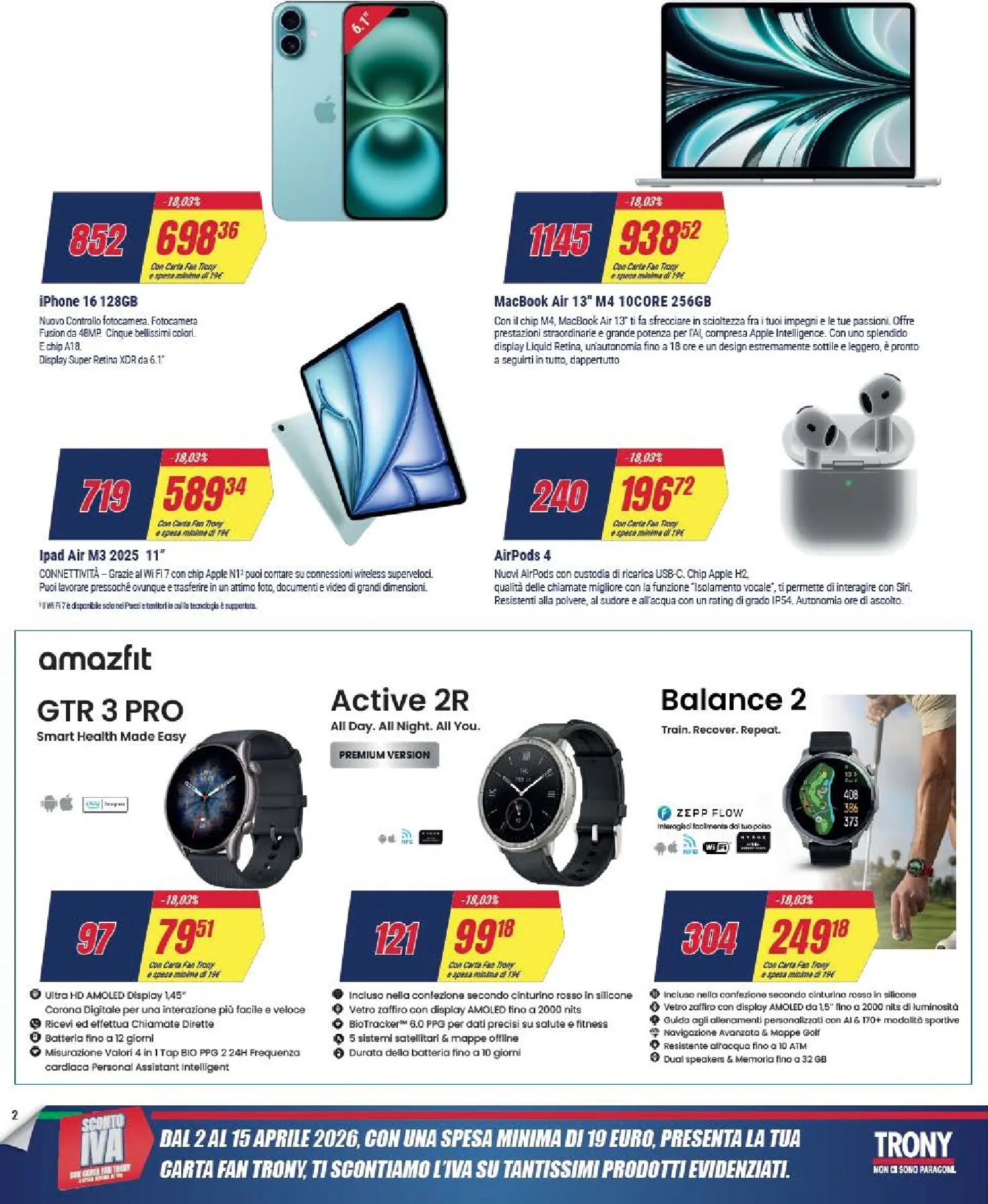 Il mondo Apple è grande protagonista di questa promozione, con sconti eccezionali su dispositivi iconici. L’iPhone 16 è disponibile a 698,36€, mentre il potente MacBook Air 13″ con chip M4 e 256GB di memoria scende a 938,52€. Non mancano l’iPad Air M2 a 589,34€ e gli AirPods di terza generazione a 196,72€. Per gli appassionati di fitness, in questa anteprima ci sono anche gli smartwatch Amazfit, come il GTR 3 Pro a 79,51€. Le proposte sono pensate per soddisfare ogni esigenza, dalla produttività al tempo libero, con la garanzia di qualità dei migliori brand sul mercato.