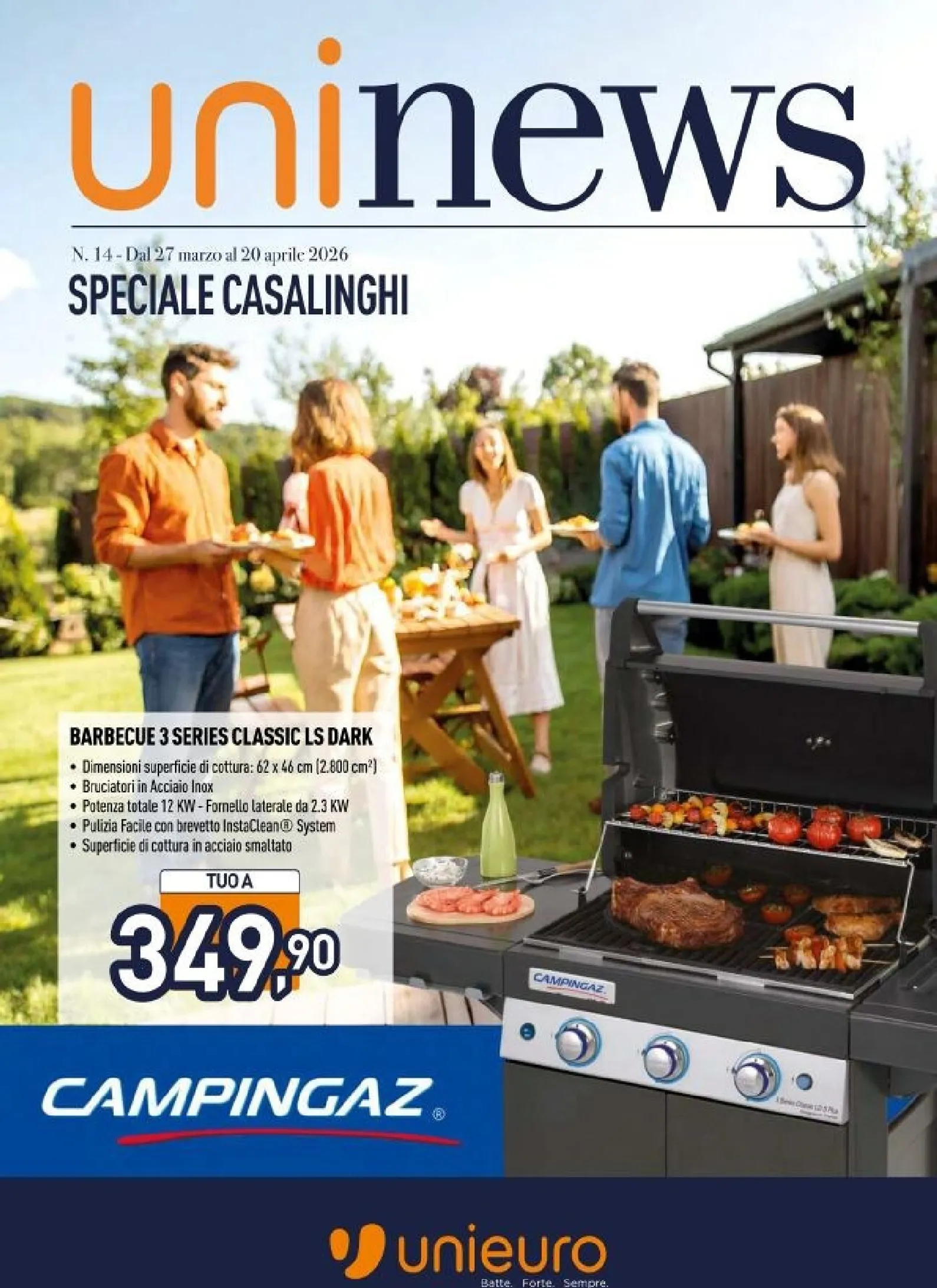 Questo speciale catalogo è ricco di spunti per vivere al meglio la nuova stagione, unendo funzionalità e design. Che stiate cercando un nuovo barbecue per le domeniche in famiglia o vogliate semplicemente dare un nuovo look alla vostra mise en place, le catalogo e offerte sono davvero vantaggiose. Per scoprire tutti i dettagli e le altre incredibili occasioni, consultate il nuovo Unieuro Volantino direttamente sul sito. Non lasciatevi sfuggire queste Unieuro Volantino dal 27/03/2026 pensate per rendere la vostra casa ancora più accogliente e pronta ad accogliere amici e parenti per momenti speciali. Le offerte vi aspettano nei punti vendita e online.