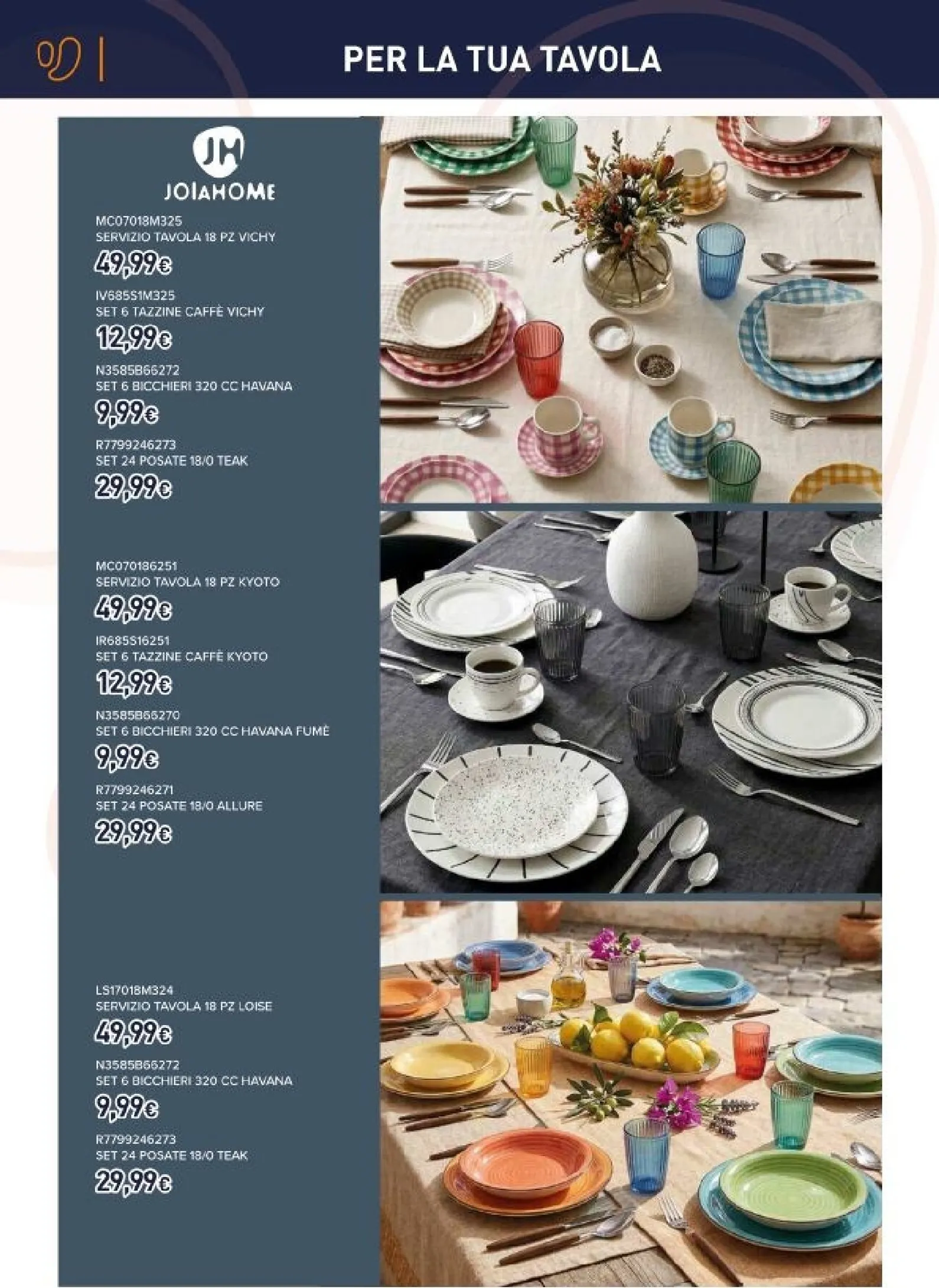 Oltre al giardino, Unieuro pensa anche alla vostra tavola. La sezione dedicata a Joiàhome propone soluzioni eleganti e colorate per apparecchiare con stile. Potete trovare servizi di piatti da 18 pezzi, come i modelli Vichy, Kyoto o Loise, tutti al prezzo speciale di 49,99€. Per completare il set, sono disponibili set da 6 bicchieri Havana a 9,99€ e servizi di posate da 24 pezzi a 29,99€. Anche la pausa caffè diventa più chic con i set di tazzine Vichy o Kyoto a soli 12,99€. Queste catalogo e offerte rappresentano un’opportunità fantastica per rinnovare il corredo della tavola o per fare un regalo di grande effetto senza spendere una fortuna.