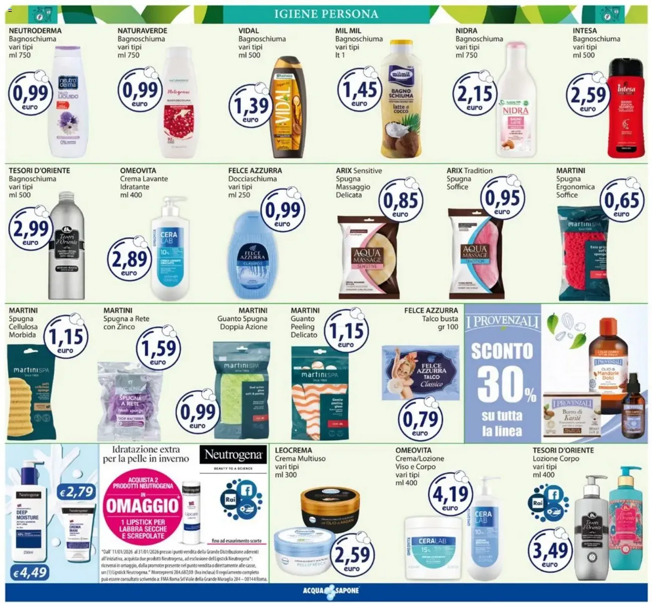 È disponibile il nuovo volantino di Acqua e Sapone con tantissime offerte dedicate alla bellezza, alla cura della persona e alla pulizia della casa! La brochure valida dal 12.01.2026 Sicilia propone sconti su shampoo, creme viso e corpo, makeup, profumi, prodotti per l’igiene quotidiana, oltre a detergenti e articoli per la pulizia domestica delle migliori marche.