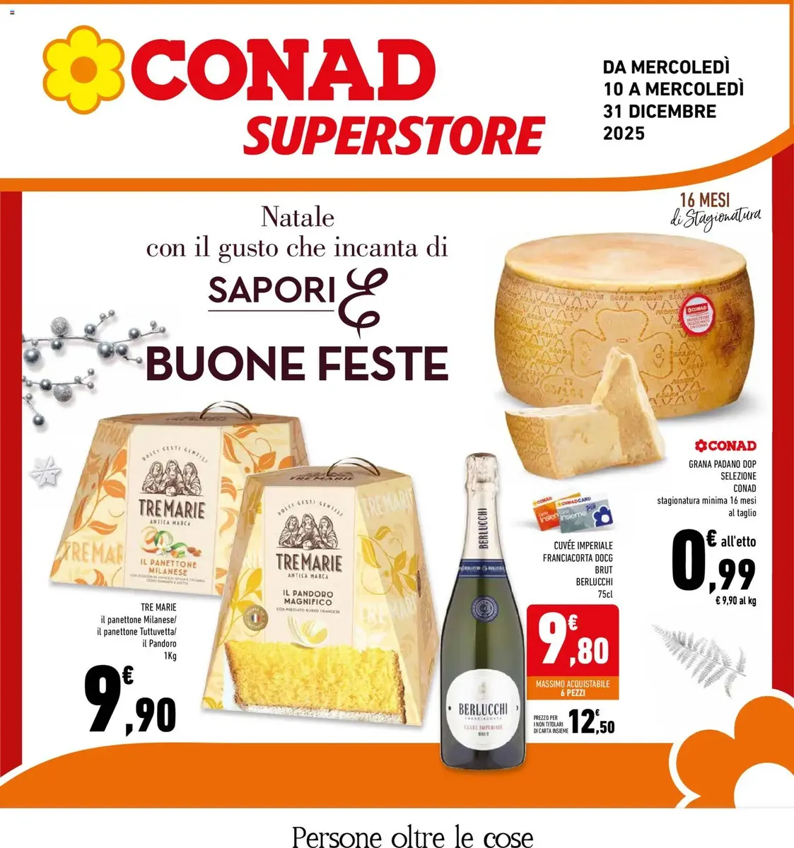 È disponibile il nuovo volantino di Conad con offerte aggiornate pensate per unire qualità, convenienza e attenzione ai prodotti locali. La brochure valida dal 10.12.2025 Superstore Lazio propone sconti su freschi, alimentari, bevande, prodotti per la casa e linee a marchio Conad, apprezzate per qualità e convenienza.