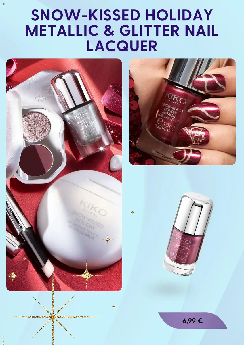 Il nuovo volantino KIKO Milano, valido dal 02.12.2025 Offerte NATALE 2025, include anche offerte speciali e collezioni in edizione limitata disponibili solo per un breve periodo.