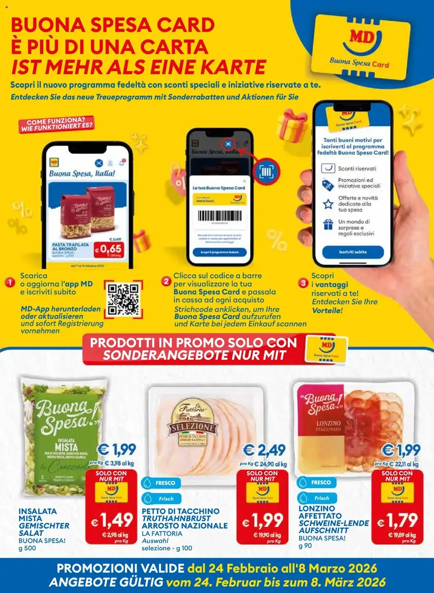 È disponibile il nuovo volantino di MD Discount con tante offerte pensate per garantire risparmio e convenienza nella spesa quotidiana! La brochure valida dal [gazeta_date] propone sconti su prodotti alimentari, freschi, surgelati, bevande, articoli per la casa e le linee a marchio MD, apprezzate per l’ottimo rapporto qualità-prezzo.