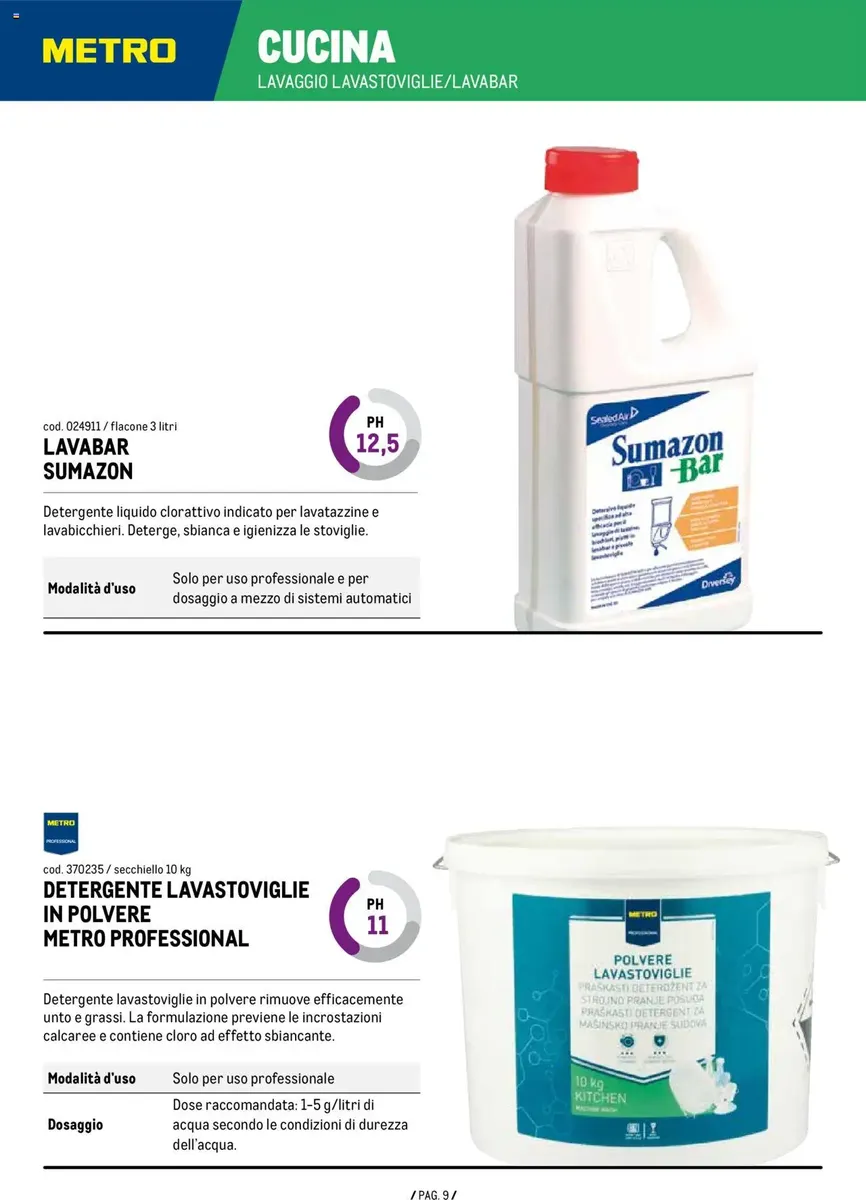 Il nuovo volantino METRO, valido dal 11.09.2025 Detergenza Professionale, include anche promozioni riservate ai possessori della METRO Card e offerte a tempo limitato disponibili solo per un breve periodo.