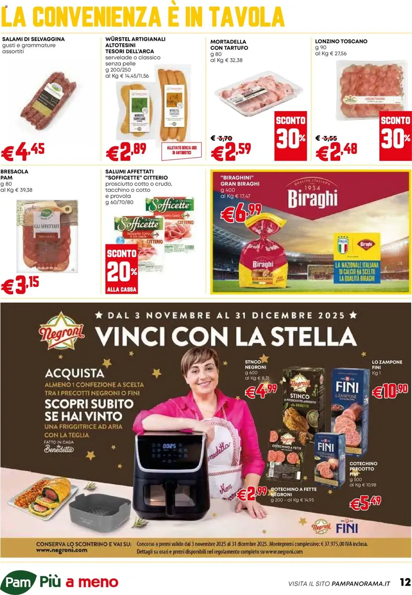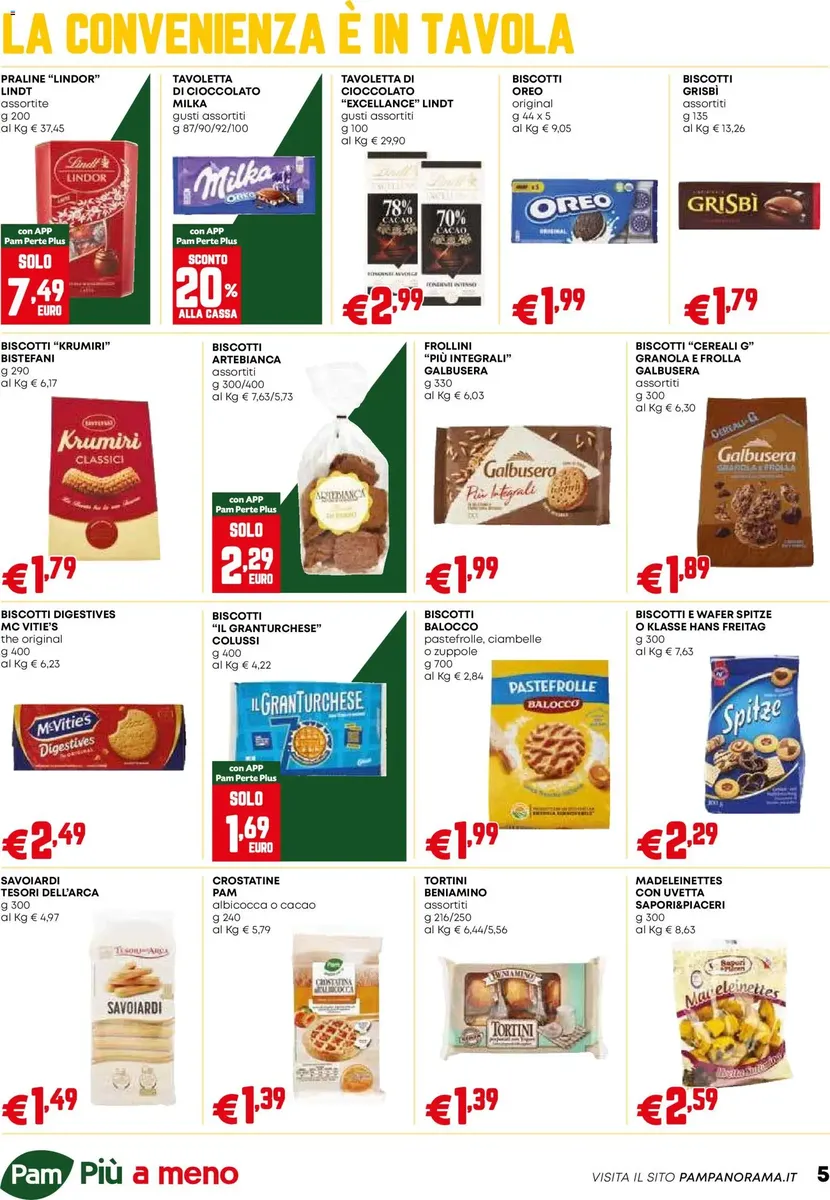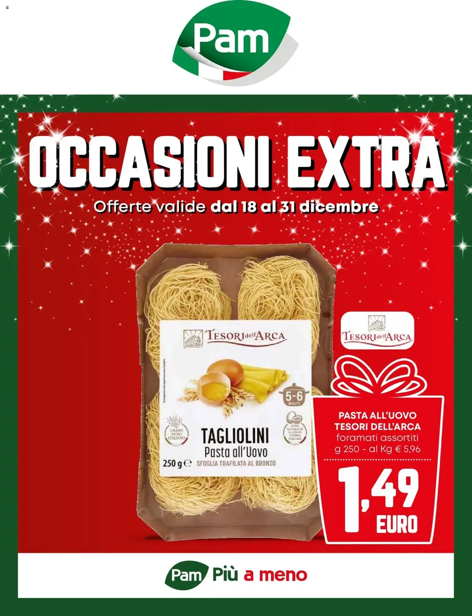 È disponibile il nuovo volantino di PAM con tante offerte pensate per garantire qualità, freschezza e convenienza nella spesa quotidiana! La brochure valida dal 18.12.2025 Occasioni Extra propone sconti su prodotti freschi, alimentari, bevande, articoli per la casa, cura della persona e le linee a marchio PAM, note per l’ottimo equilibrio tra qualità e prezzo.